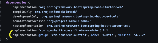 다음과 같이 의존성을 추가한다.
