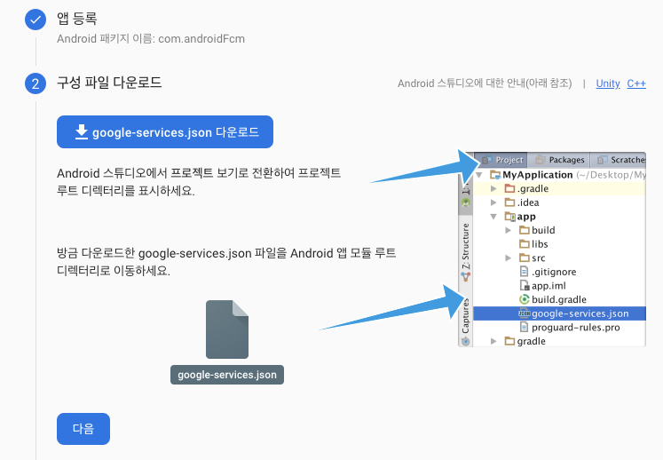 - google.service.json파일을 다운받고, 사진의 경로에 넣어준다.