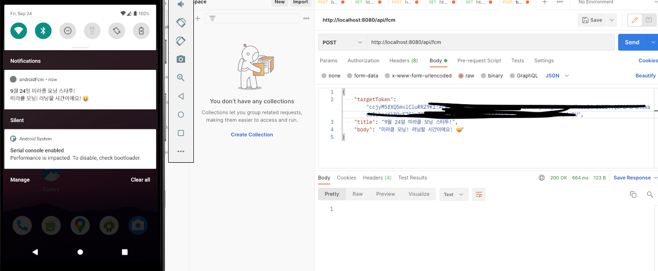 - targetToken, title, body를 작성하여 서버에 보낸다.